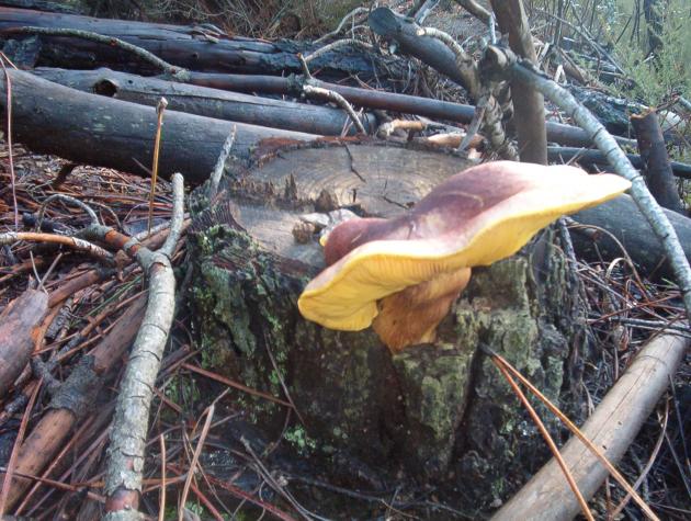 seta en tocón de pino,