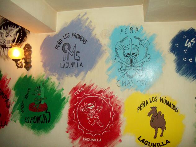 Esta foto está en el bar de Salus, en el reservado que tiene abajo, y tiene toda la pared pintada con los distintos dibujos de cada peña.