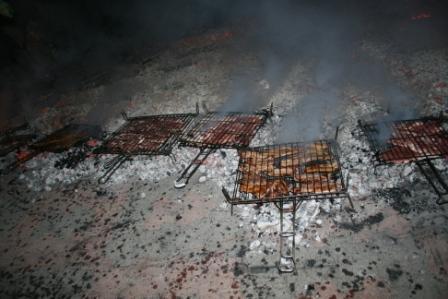 Y cómo no, asándola. Yo calculo que en algún momento pudo haber 60 ó 70 parrillas a la vez. Mucha gente repitió cuanto quiso.