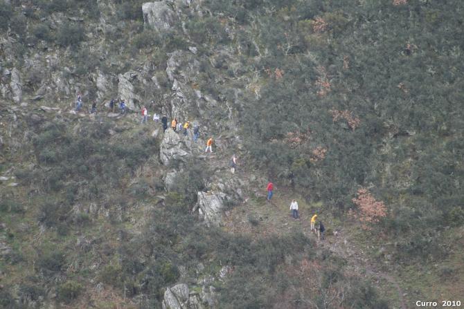 Solía salir temprano, cuando aún nos cubría la bruma; iba muy bien abrigado con la mochila ceñida a la cintura. Los alpinos recovecos preciosos, me olvidaban otras fatigas; subían y ladeaban, cortaban barrancosos peñascos con tal precisión y hermosura; aquellos accidentados senderos marcados en piedras calizas. Cubríamos tramos de pinos, tomillos y espliegos agostados con las botas ajadas y los pies ya cansados. La excursión se diseminaba en el trayecto, formando grupos retardados... Esta foto está hecha el pasado día 3, en la excursión que se hizo al Pozo de los Horcos.