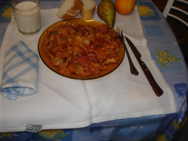 Bajo los encinos las cogí, unas eran de cardo (raca gris) otras parasoles y, por cosejos de JSM, no puse unas chiquitas que anunciaban muerte. Las cociné tal aquí las véis. Picaban como demonios al calor del tomate y del jamón y, con temores de envenenarme, las cocí con un chorrito de vinagre y sal, las metí en el frigorífico hasta hoy; y ya las puse friticas con ajo y eso otro que quedó dicho pero no obstante tengo miedo y me he preparado un vaso de leche (contra el veneno). ¡Hasta el Domingo amigos!