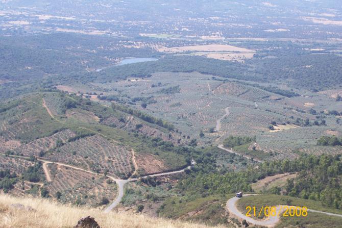 Estrecho sendero, accidentada caída de piedras y hoyadas ¡Resopla la mula! Va muy cargada. A pie la sigue una perra, botines y alpargatas; grupito de voces que a ratos calla ¡Ladridos! Una bastarda. El sacho golpea. Soslayada en el camino se halla descabezada, festín de moscas u otras alimañas. Serpentea la ruta hacia los olivos y las huertas surcadas ¡Gorgotea el agua! Aroma fresco, restaurador; a medida que aparece nuestra pétrea cabaña. Al raso tomateras, cebollas y patatas;... Y mira el ojo desde dentro expandirse la tierra bajo la monda luz del rey entre los astros, desde la atalaya de los dioses inmortales; y estira el puntero ávido entre las brisas que rompen un sensible velo de realidades febriles y senderos, tocones cubiertos de olivos; vaguadas tras los oteros que marcan la arteria de los fluidos que riegan mi pueblo. Una charca en la hondonada donde abreva el ciervo, el corzo; los jabatos con sus madres y las cepas de otras vidas orgánicas que mi tierra ha elegido...
