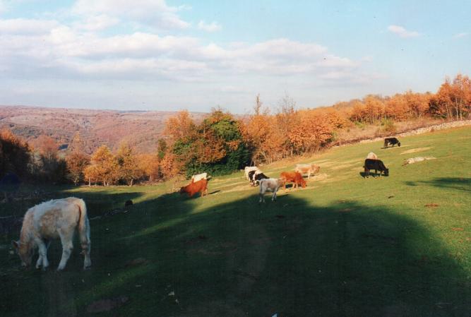 Siempre me gustó mi pueblo. Esos prados tan verdes, sus canchales y arroyos; las vacas, los burros; los bosques roblados y las gallinas con sus gallos. El olor de las cuadras, las cabras merodeando en los caminos que cruzan los serranos; las sombras que dan los castaños y los rebollos sobre los helechos verdes entre paredes cercados. Las raíces de la buena gente asomada en vetustas calles y los poyos de granito bajo los balcones que crujen recuerdos pasados ¡Ay, cántaros y jarras! Botijos...
