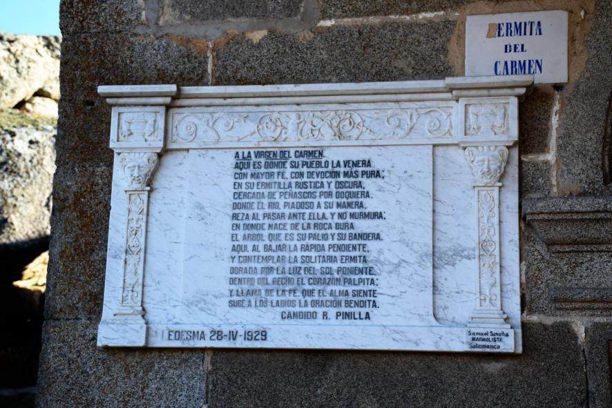 Placa en la fachada de la ermita del Carmen,