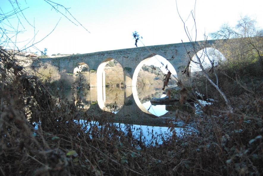 El puente medieval desde la orilla del Tormes,