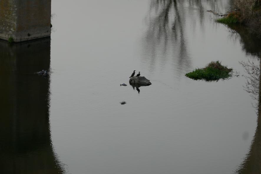 Cormoranes en una roca del río Tormes,