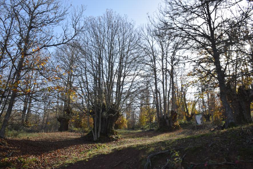 Vista de algunos castaños centenarios en la Dehesa,