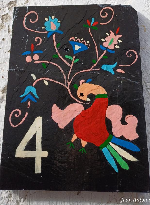 Numeración de una casa con pizarra pintada,