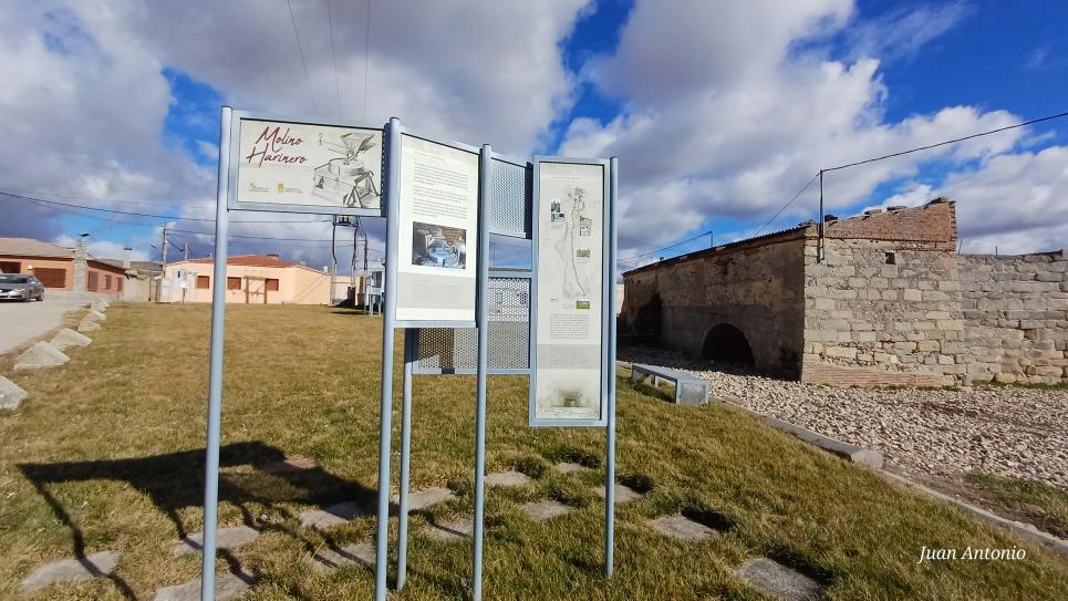 Paneles con información sobre molinos harineros,