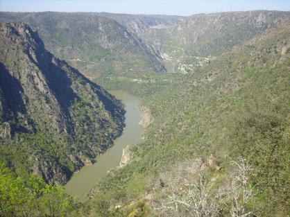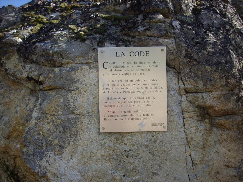 El rio Duero no transcurre en Mieza, ni en toda la raya con Portugal, entre montañas como dicen el pie de estas fotos... El cauce es un hondo surco y las orillas escarpadas son las arribes... De modo que no hay montañas sino arribes en forma de V bastante cerrada... Uno de los caminos que llegan al escarpe de Mieza se llama La Code, paseo bonito entre cerezos y plantas mediterráneas, adermás de unas vistas de la naturaleza, ddel horizonte y de la orilla portuguesa. Vale pena. Esta zona es una de...