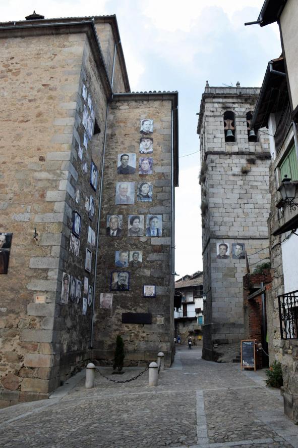 Fachadas de la iglesia y el campanario tienen fotografías de personas sin fachada donde colocarlas,