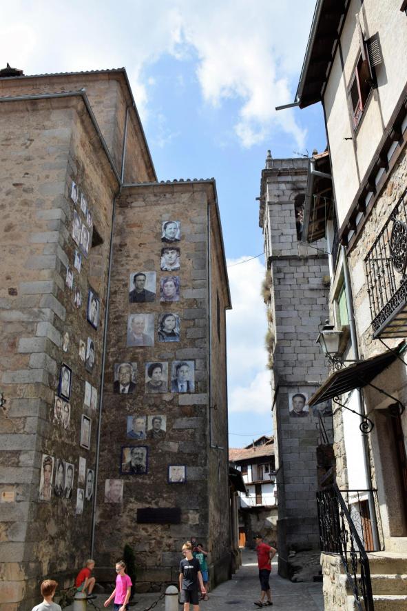 Fachadas de la iglesia y el campanario tienen fotografías de personas sin casa donde colocarlas,