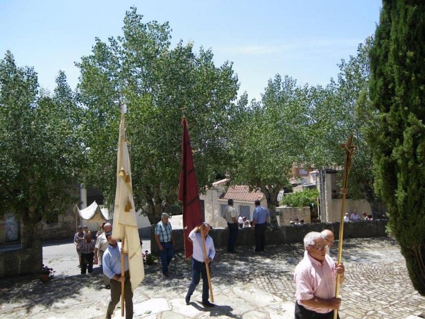 En la procesión del Santísimo que se hace el dia de Corpus le acompañan dos "pendones" que llevan con gran dificultad porque pesan mucho y menos mal si no hace viento porque los años que hace viento el transporte es aún mas difícil.