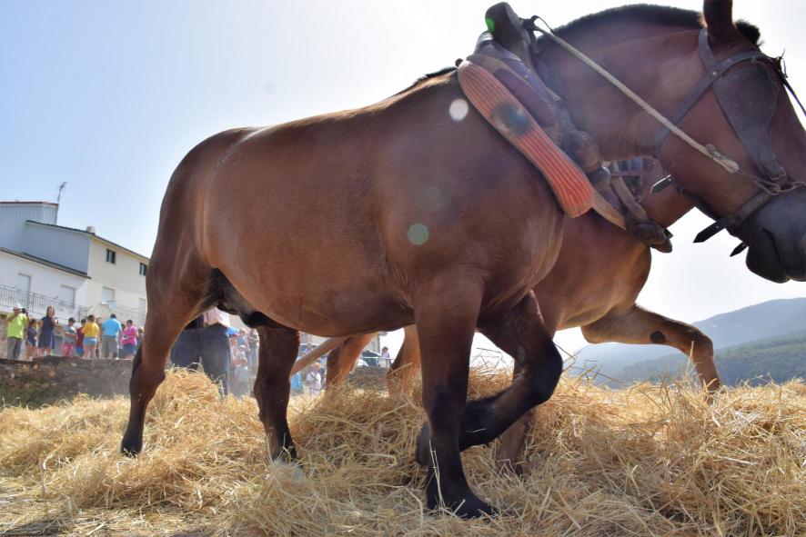 Bestias trabajando en la era,