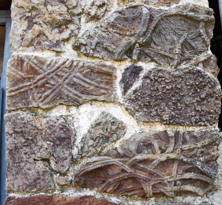 Restos fósiles adornando una fachada,