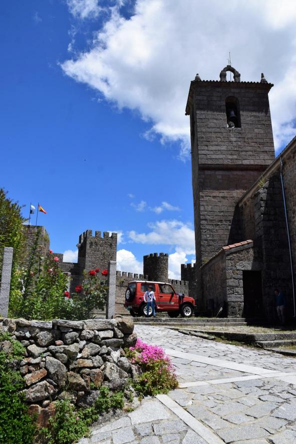 Vista de la torre de la iglesia y castillo al fondo,