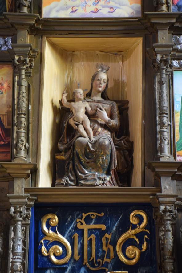 La Virgen con el Niño en el centro del retablo mayor de la iglesia parroquial de la Asunción,