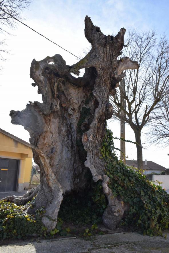 Efectos de la grafosis en uno de los olmos que están delante de la iglesia,