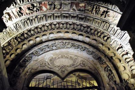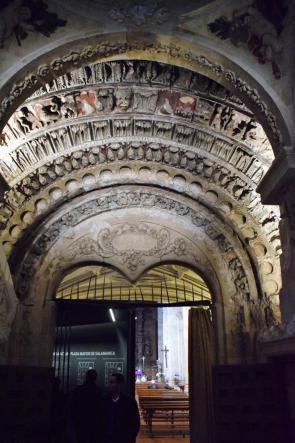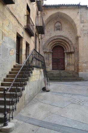 "Campanario y fachada con portada románica orientada al norte" y más...