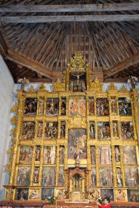 Bajo la techumbre mudéjar de la iglesia de la Exaltación de la Santa Cruz, encontramos este magnífico retablo mayor.