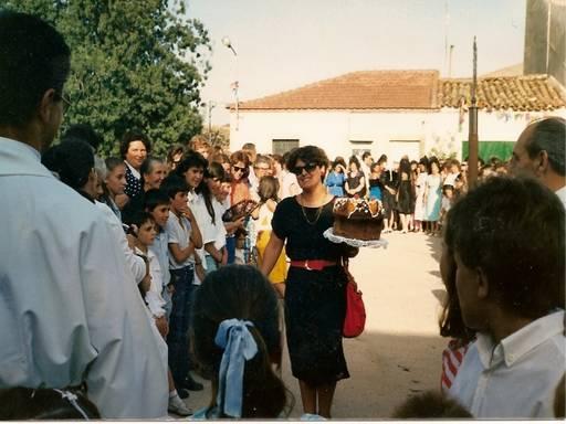 Conchi la de manoli ?? no sé se parece. Después de la procesión se ofrecen los roscones. Las madrinas van con peineta, se los ofrecen a la virgen y se subastan, no falta la música de un tambolirero.