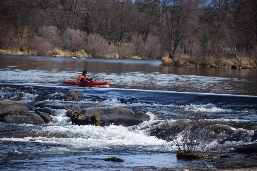 Piragüista intentando bajar por la pesquera,