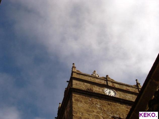 Detalle en la torre de la Iglesia arriba,