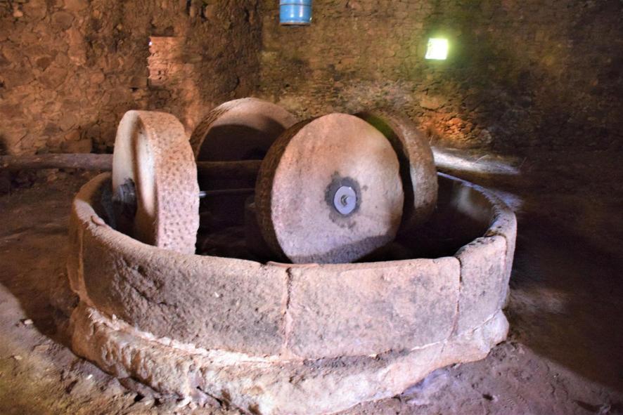 Ruedas de moler en el interior de la almazara,