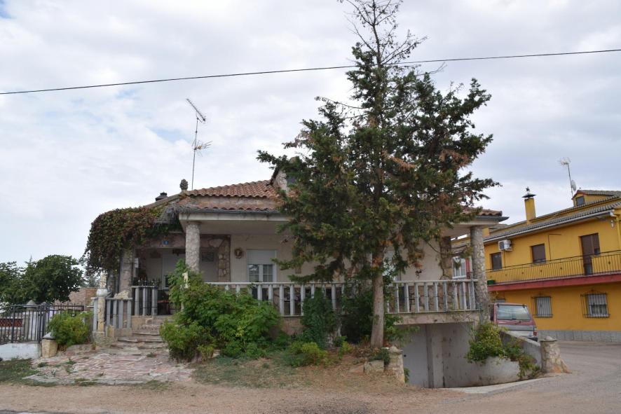 Casa semitapada por la conífera,