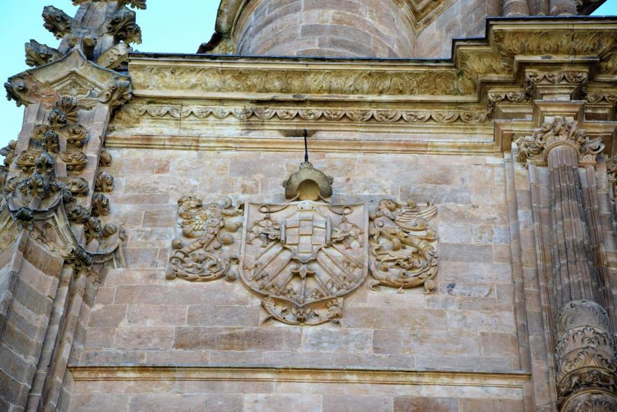 La casa Ducal de alba fue fundamental para levantar este convento de los Padres Dominicos, esta es la razón por la que aparece su escudo armas en distintos lugares de las fachadas del convento. En la fachada de la Iglesia del Convento de San Esteban.