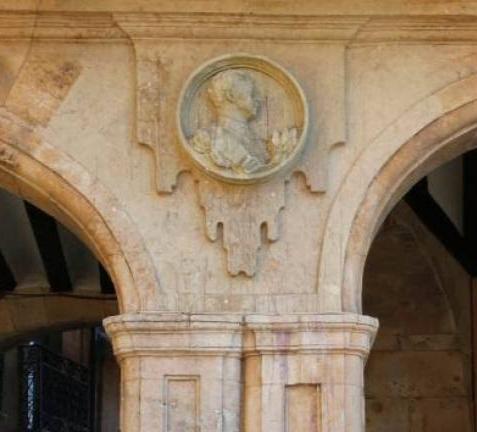 Medallón con la efigie de Franco en la Plaza Mayor,