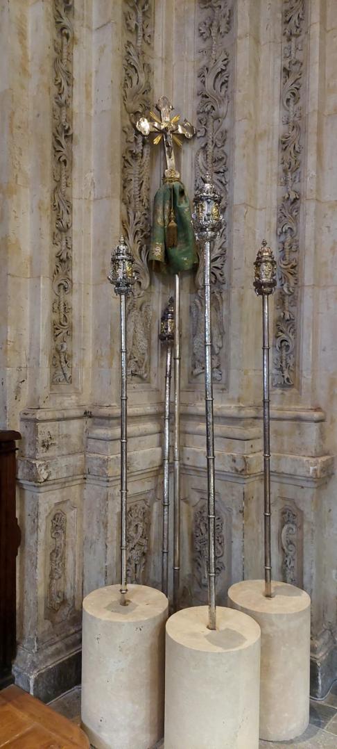 Cruces y faroles procesionales en la Sacristía de Canónigos de la Catedral Nueva,