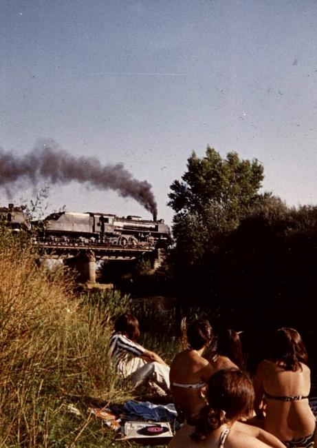 Locomotora vapor "playa"el puente hierro,