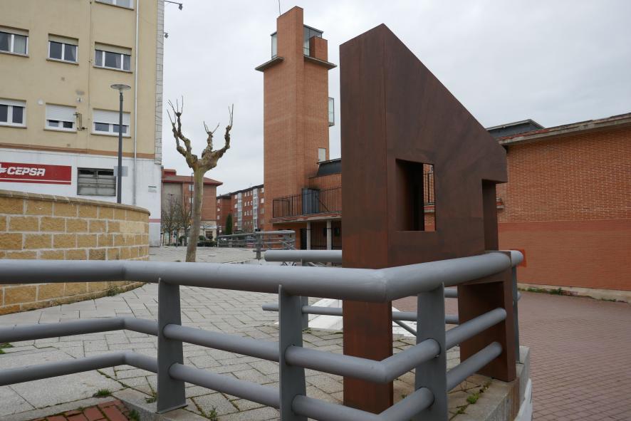 Junto a la iglesia un rincón con escultura,