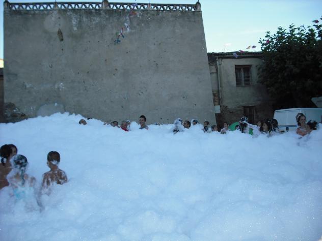 iglesia con su consiguiente aludes de espuma