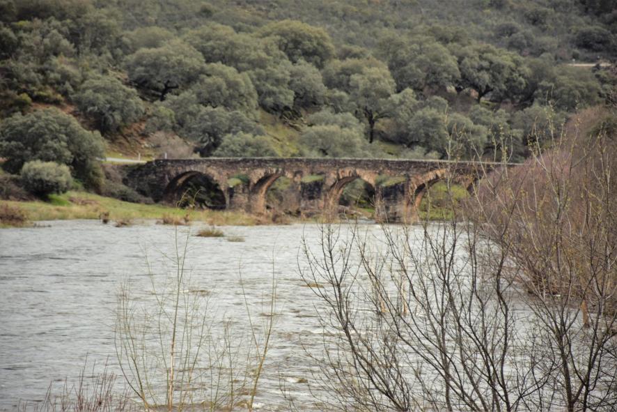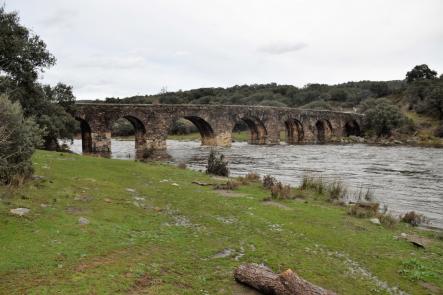 Alguas arriga del puente viejo en el río Alagón,
