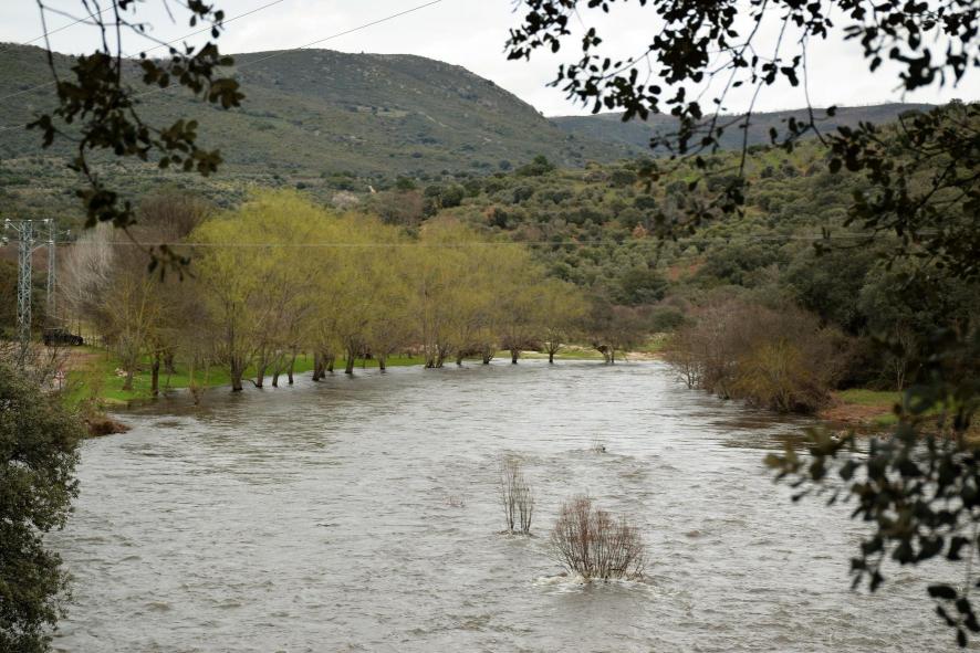 La crecida del río afecta a los árboles de la orilla,
