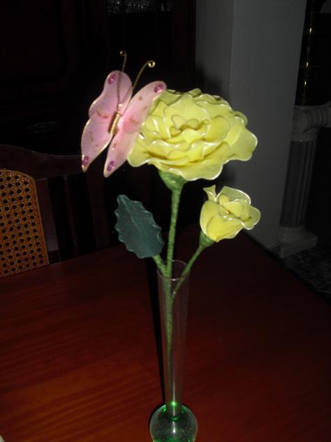 Rosa con mariposa,