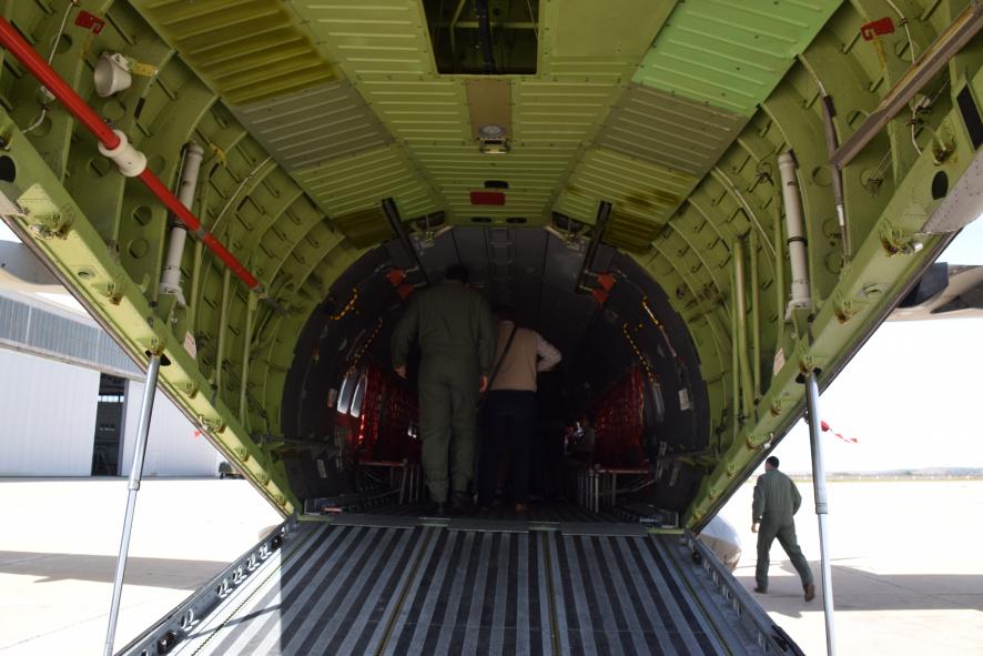 Interior del avión de transporte,