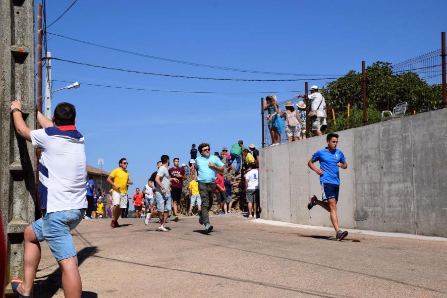 Jóvenes corriendo, lo que da a entender que el encierro a caballo comienza,