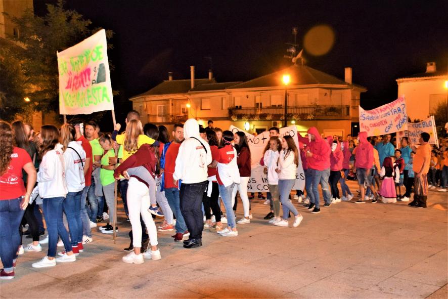 La plaza duante la noche de los disfraces,