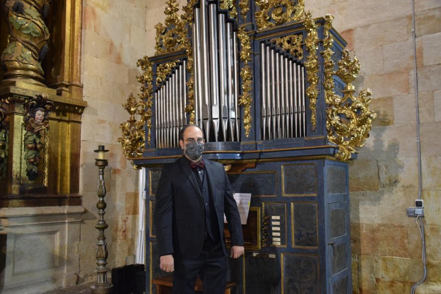 Manuel Gutiérrez junto al órgano del siglo XVIII antes de dar un concierto,