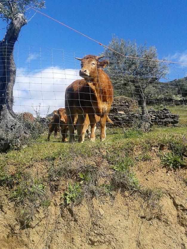 Ternero observando tras el alambre,