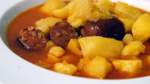 Cocina española, patatas guisadas con carne