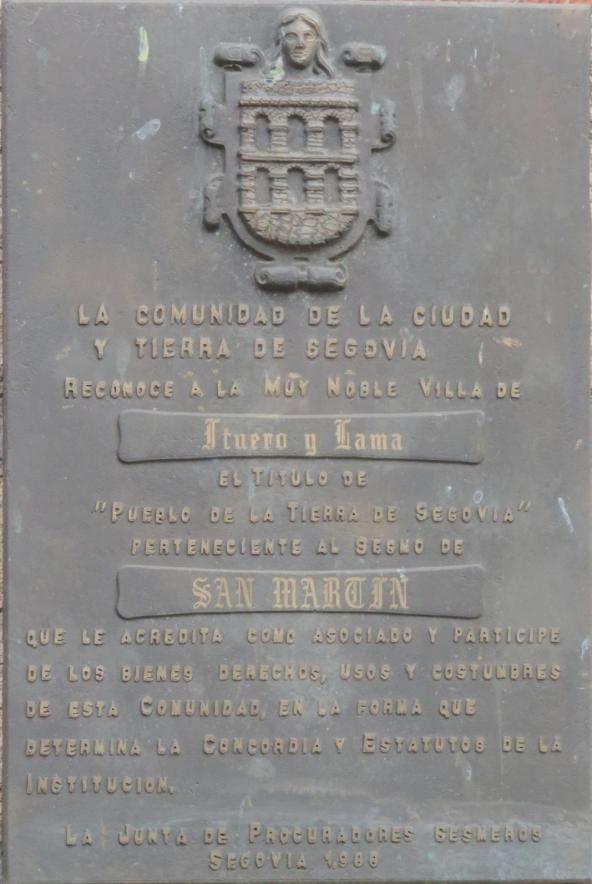Placa del título de "Pueblo de las Tierras Segovianas",