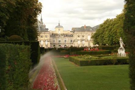ligera nevada en los jardines del palacio,