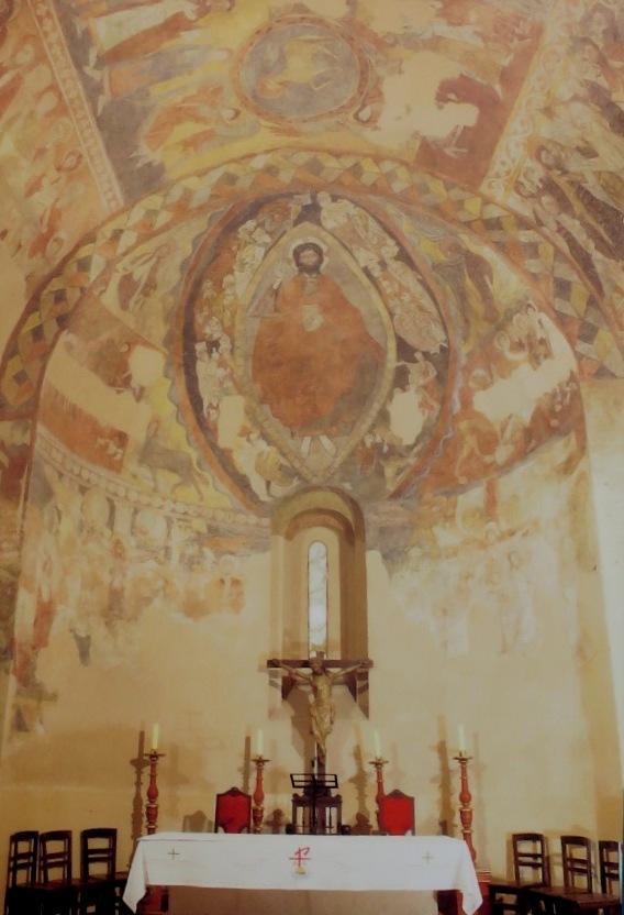 ábside. Importantes pinturas murales románicas (finales del s, XII) con representaciones del Génesis, escenas de la pasión de