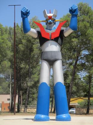 No se a Vds., pero a mi este asador me recuerda muchisimo a MAZINGER Z. En estos momentos se esta mascando la tragedia, con el fuego ya calmado las chuletas casi a punto hasta el perro se ha quedado hipnotizado con el olorcillo, vamos vamos que es la hora de comer, que ya esta la mesa puesta y la ensalada en su sitio, vamos sin mas tardanza que los niños no paran, y hay que taparles un rato esa boquita tan bonita, por favor. JAB