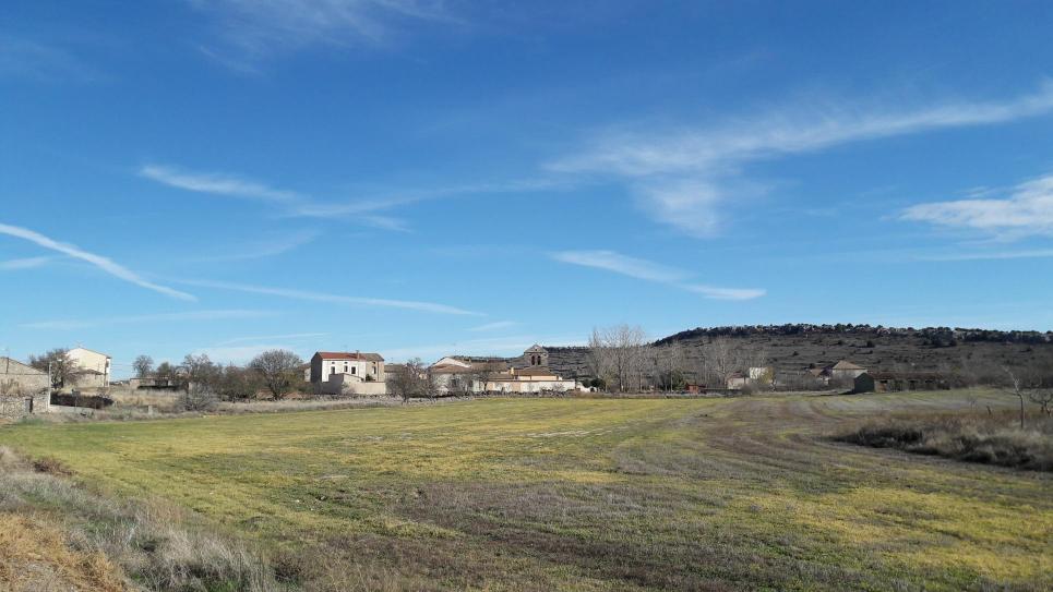 pueblo de lejos en primer plano esta la