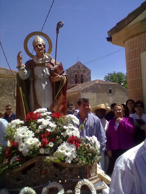 San Mamerto en primer plano, puede verse en la parte de abajo y en las andas, unas rosquillas de Cantalejo, cuatro por cada lado, al llegar a la entrada de la